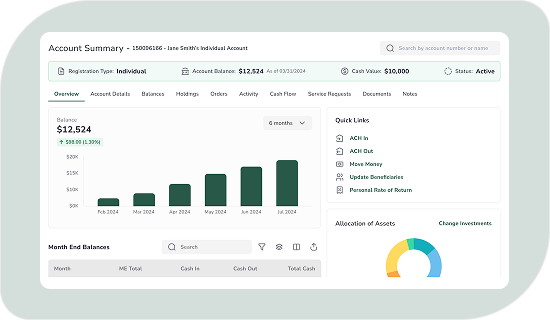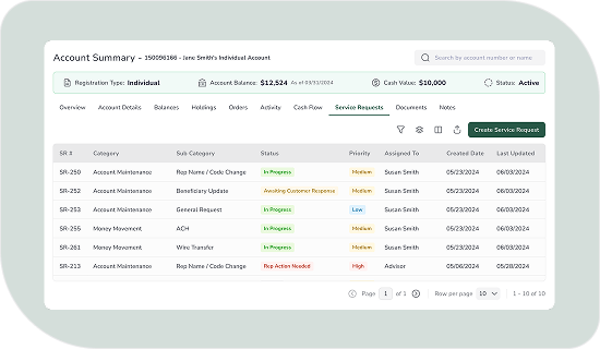 Our comprehensive dashboard empowers you to elevate client relations through actionable intelligence on books of business. From tracking asset growth to handling service requests, our solution ensures that you have everything you need to provide unparalleled service and insight, and foster lasting client trust.