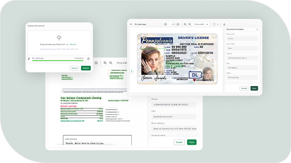 Harness the power of AI for document upload and extraction, streamlining data capture and enhancing accuracy during the onboarding process.