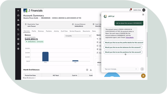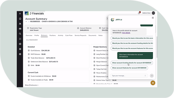 Investors communicate through various channels—chat, online, text, phone, or in person—and expect a seamless, delightful experience. JIFFY.ai automates account servicing requests from start to finish, whether initiated by clients, advisors, or the Home Office, while reducing administrative and support costs that impact margins.