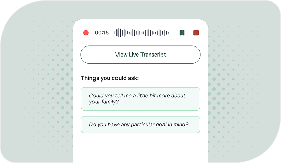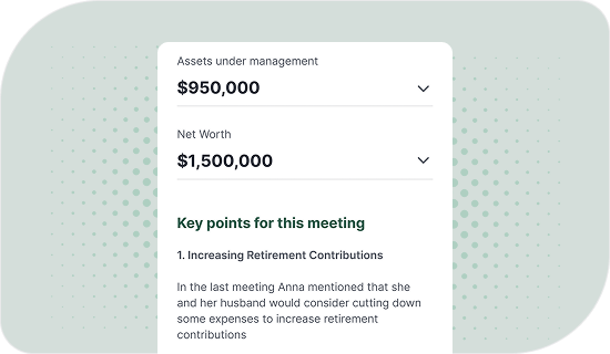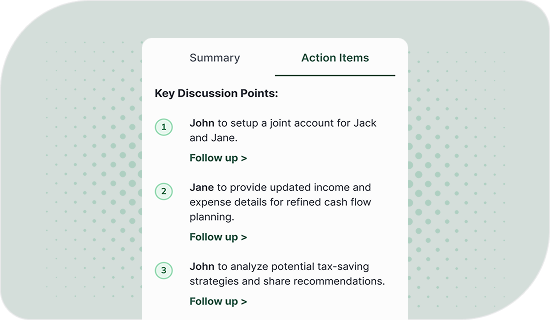 Wealth managers often lose valuable hours preparing for and following up on client meetings. Our solution automates preparation, live note capture, and post-meeting wrap-up, seamlessly integrating with CRMs. It helps improve productivity, facilitates compliance-ready documentation, and ensures more time to focus on building meaningful client relationships.