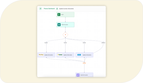 Understand investor progress and advisor performance with our automated, custom dashboards for milestone-based reporting. Ensure transparency and foster a dynamic, responsive onboarding process by monitoring progress from the outset.