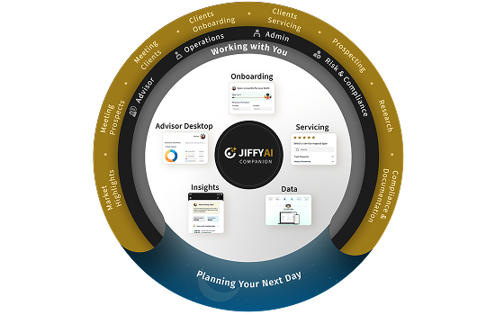 JIFFYAI empowers Wealth Management firms to drive growth, operational excellence, and hyper-personalized client engagements. Our AI Companion elevates advisor and investor experiences across planning, meetings, onboarding, servicing, and ongoing operations by unlocking insights from a unified Data Warehouse. Our AI-powered solutions—Unified Onboarding, Universal Desktop, Account Servicing, and Advisor Transition—boost productivity and accelerate organic and inorganic growth. Built on a proprietary no-code platform, JIFFYAI enables seamless data management, actionable insights, and advanced analytics at scale.
