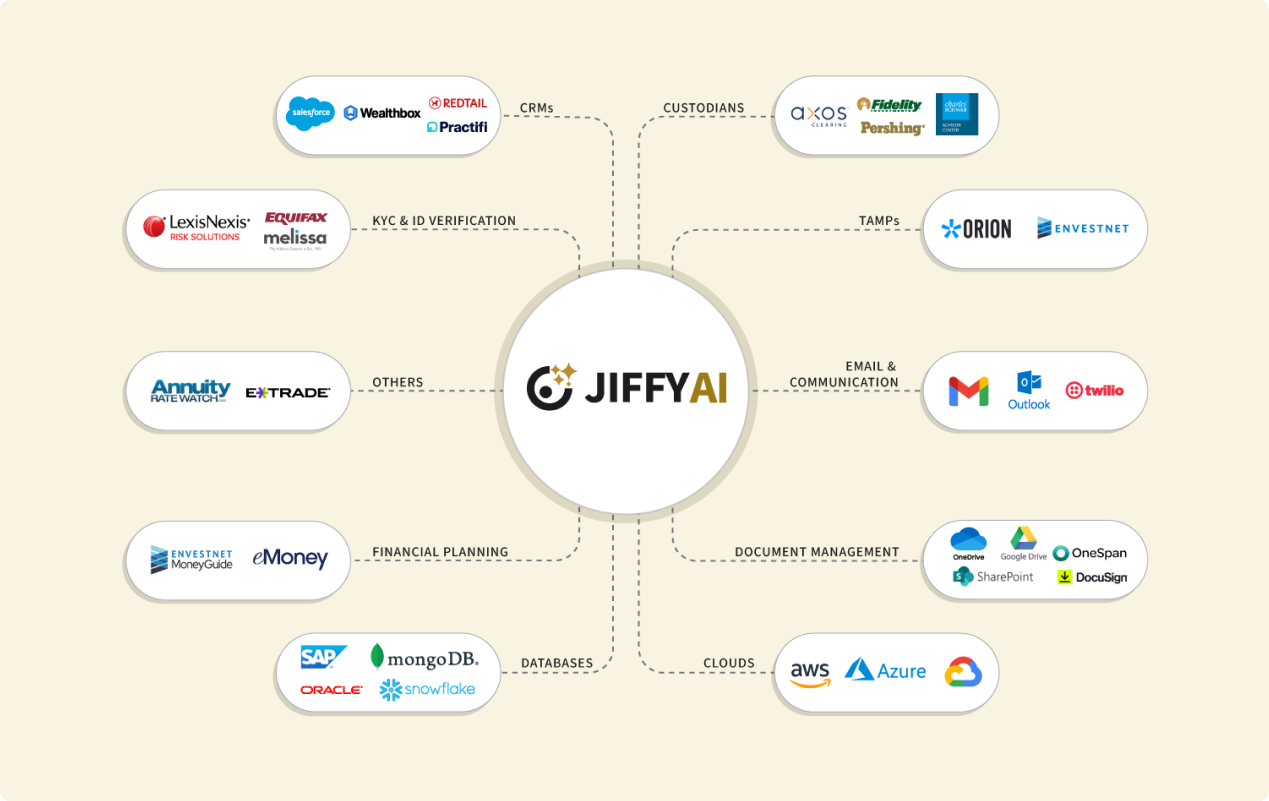 RIAs can use JIFFYAI to simplify client onboarding, automate servicing, digitize compliance, and deliver personalized engagement at scale.